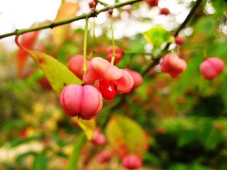 まゆみの実がはじけた頃は 寒さを感じる頃ですよね。