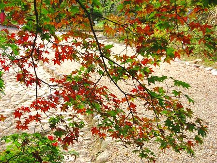 赤と緑の紅葉が素敵ですね。色の具合がちょうどいいです。
