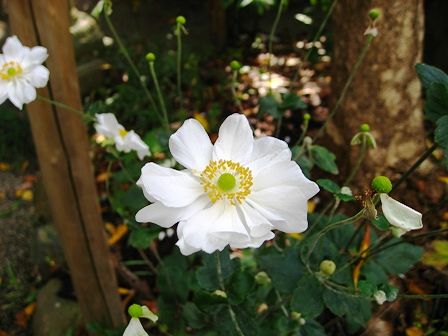 境内になんと白い八重の秋明菊が。まさかこんな近所で見れるとは。