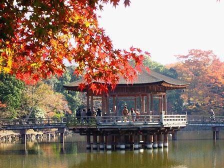 昨年は鷺池の紅葉を見たので、今年は東大寺側に行って見たのですが、浮見堂周辺(↑)はやっぱいいですね。