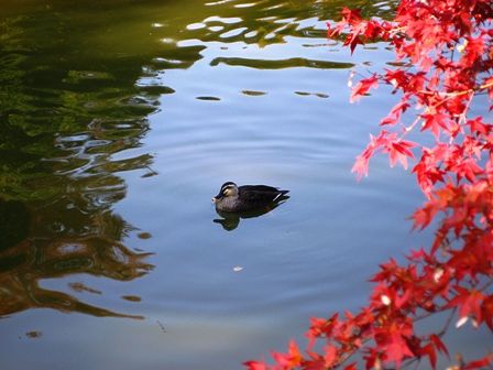 鷺池のカモさんと紅葉