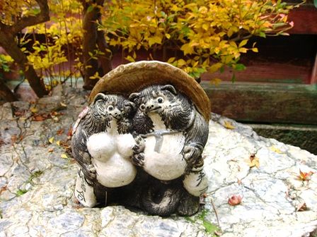 たぬきさんが寝そべってる置物がお庭にあったんですよね~。
