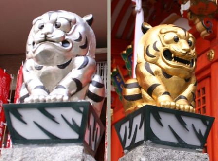 ゴールドとシルバーの狛寅、ちゃんと阿吽になっていますね。