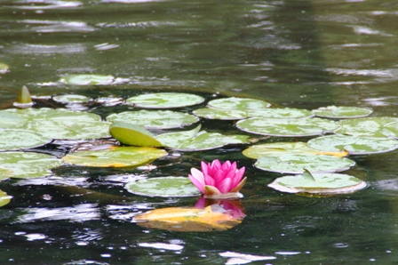 久し振りに奈良県新公会堂に行く事にしました。まず、国立博物館の前を通りましたので、例の鴨の親子を探したのですが、残念ながら今日は対面出来ませんでした。この前見かけた時は、赤ちゃんがかなり大きくなっていたので、嬉しかったです。鴨はいませんでしたが、睡蓮が咲いていましたので、雨の中、傘を差して撮影しました。