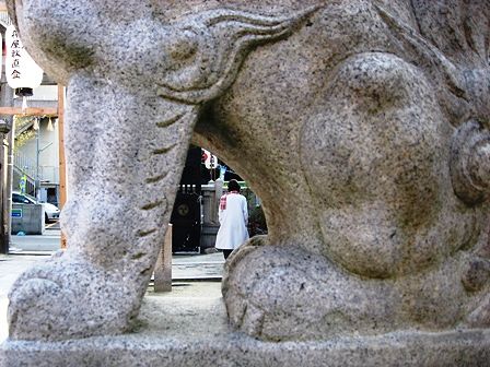 次女のマニアック写真② 狛犬の足の間から見えるお母さん(今年も遊ばれてます。)