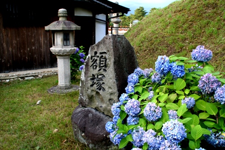 ちょうど夕方6時の興福寺の鐘の音が聞こえて来たので、とりあえず興福寺に行きました。すると紫陽花が目に付きました。こんな所に紫陽花が咲いているなんて今まで知らなかったので、近づいて見ると額塚と言う石碑があって、こんもりとした塚がありました。もう何十回と興福寺を訪れているのに、こんな塚があるなんて全く気が付きませんでした。