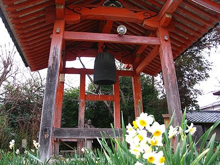 本堂へ上がる階段の途中の休憩所みたいなベンチの置いてある、