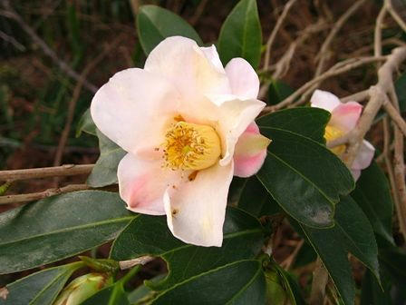 お正月に初詣に行った時、偶然見つけたんですが、少しだけ咲いていました。