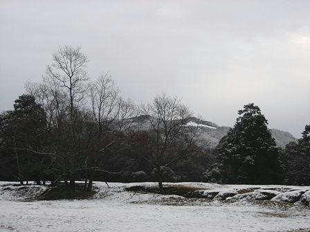飛火野の雪景色 もちろんカラーですが、モノクロの世界になってます。