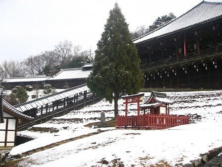 二月堂です。この辺は結構雪が残っています。