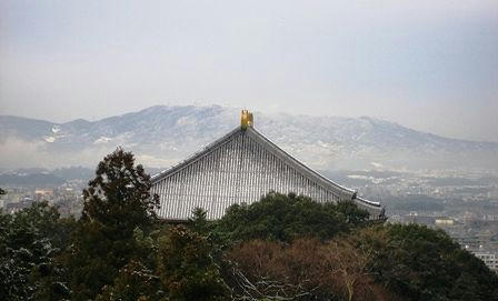 二月堂から見た大仏殿と生駒山