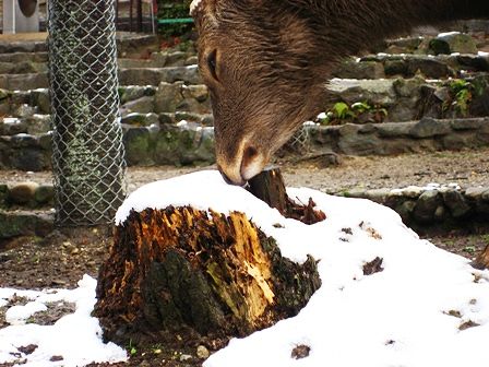 雪をなめてる鹿さん、どんな味かな? 若草山山麓にて