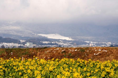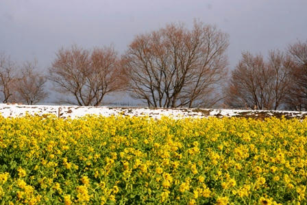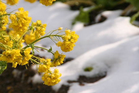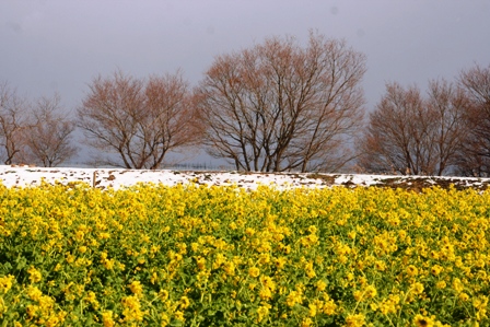 菜の花と雪のコラボなんて珍しいですよね。びっくりしました。