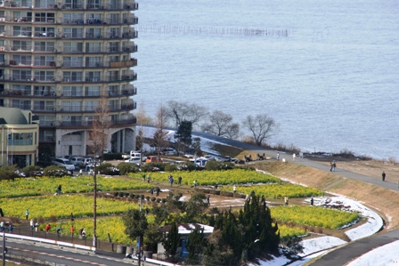 レストランから見た菜の花畑 レストランは12階にあります。