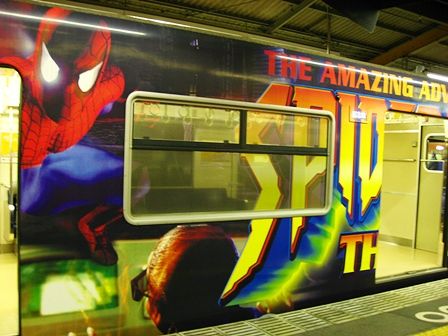スパイダーマンの電車、何か守られて乗ってる感じかな(^^♪