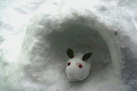 お嬢さんの力作の雪だるまとかたちゃんのミニ雪うさぎお疲れ様でした。とっても可愛いです。