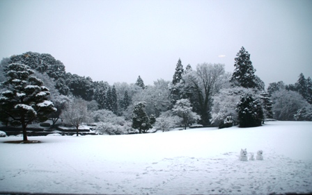 まさか、この雪の降らない奈良市で雪だるまや雪うさぎを作れるなんて