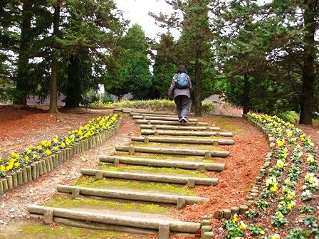 階段の赤いのは、多分赤土だと思います。