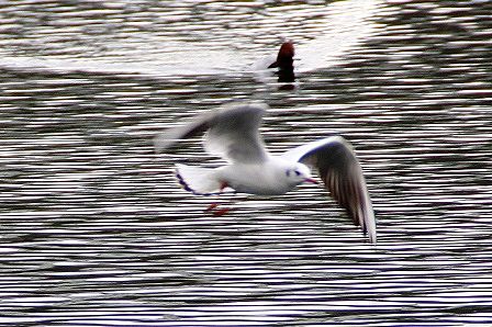 こちらはユリカモメです。足をバタバタして泳いでるのが分かります。