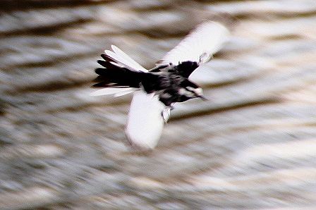 ハクセキレイの飛んだ瞬間の絵が黒と白がはっきり分かれてて