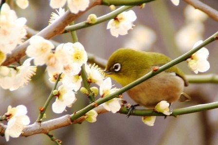お馴染みの梅とメジロです。
