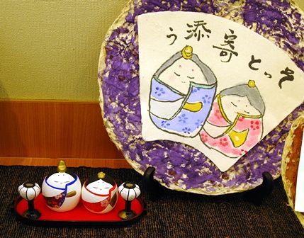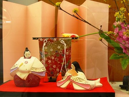 大阪モノレールの千里中央駅の構内にこんな素敵な雛人形が。