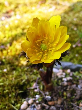 立派なしだれ梅、スゴイですね。フクジュソウも可憐です。