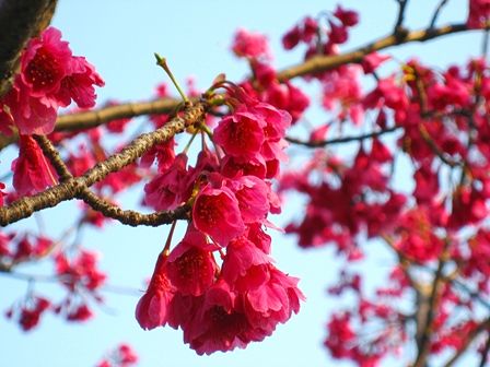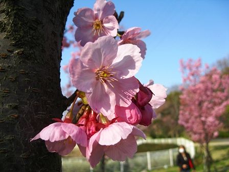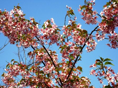 河津桜は早咲きの桜で、横浜にいた頃、熱海梅園の梅祭に行くと必ず咲いていました。