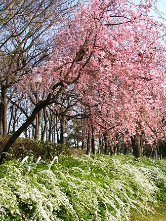しだれ桜と雪柳のコラボです。