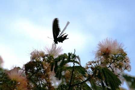 ねむの木っていうと美智子様の作詞された「ねんねのねむの木ねむりの木~♪」という歌が思い出されますが、初めて見ました。こんなに可愛いお花だったとは。そしてそこに蝶々が止まってる所をよく撮られましたね。貴重な写真です。