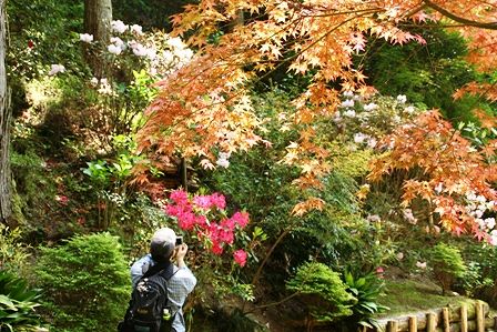 赤いシャクナゲを撮影するかたちゃんA 久しぶりの登場です!