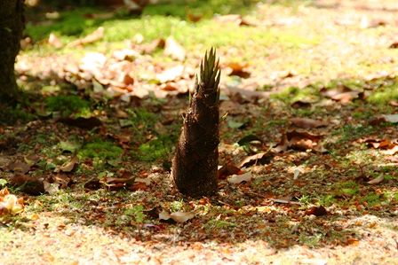 何とお庭にタケノコがニョキッと顔を出してました。