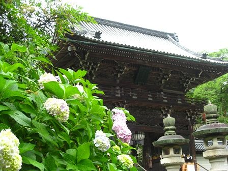 アジサイと仁王門
