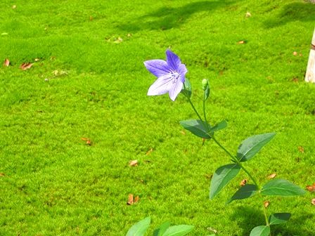 杉苔と紫のキキョウのコラボや階段の脇のキキョウがとっても綺麗ですね。
