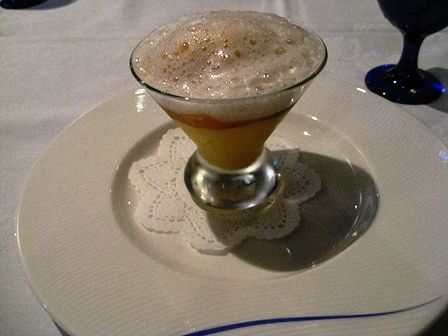 パッションフルーツのシャーベットとハーブティの泡立てたもの