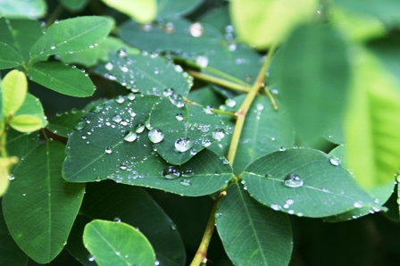 ぼんやり歩いていると見過ごしてしまう葉の水滴も、こうして見ると美しいものです。