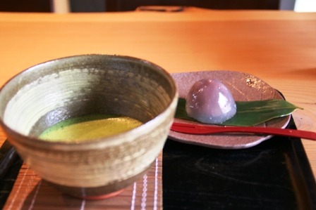 私も少し裏千家を習っていましたので、お茶の点て方が気になりますね。こちらはとても上手に点てられていたと思います。美味しかったです。