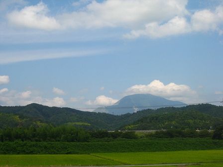 車窓からの伊吹山 山頂にはお花畑があるので、いつか登ろうと思っています。