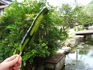 キュウリの丸かじりは初めてでしたが、地蔵川の橋の上で食べて、格別のお味でした。