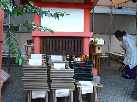 境内では明日のお祭の無事を願って神事が行なわれています。