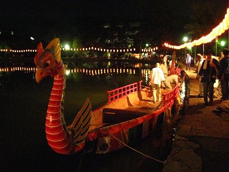 この日だけは真っ暗闇の池に浮かぶ船がとても神秘的です。