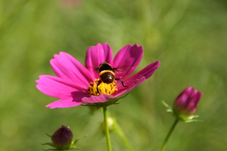 ピンクのコスモスに蜂が。byかたちゃんB