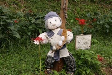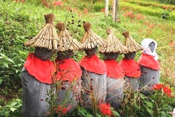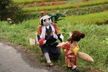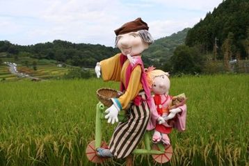 可愛い案山子や、美女の案山子、これは人間が寄ってきますよね(笑)。鳥よけにはいいかも(^^♪