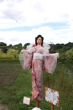 可愛い案山子の中に一体だけ美しさを表現した案山子。