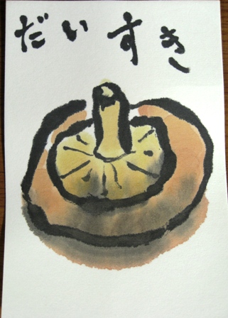 かたちゃんの絵手紙、仲々あじがあってとっても素敵じゃないですか(お世辞抜きですよ)