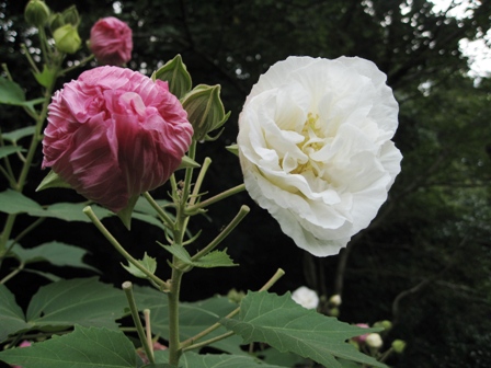 真っ白なお花と真っ赤なお花 これぞ酔芙蓉