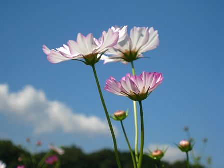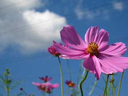 青空にはコスモスがよくあいます。コスモスって何種類あるんでしょうかね。