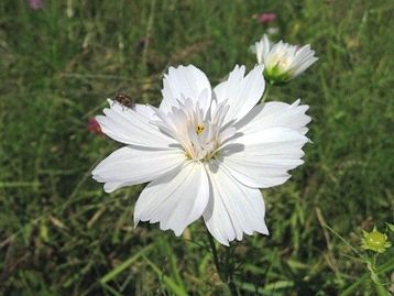 八重のコスモス、一瞬、白い蝶々が飛んでるのかなと錯覚してしまいました。