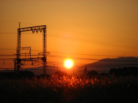 こんな綺麗な夕日の中に電線があるのはちょっと残念な気持ちもしますが