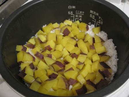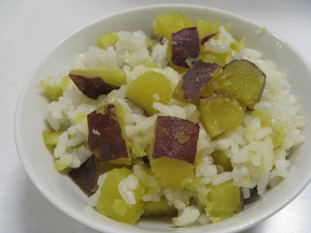 まずは、サツマイモご飯 お塩だけで味付けました。出来上がりの様子